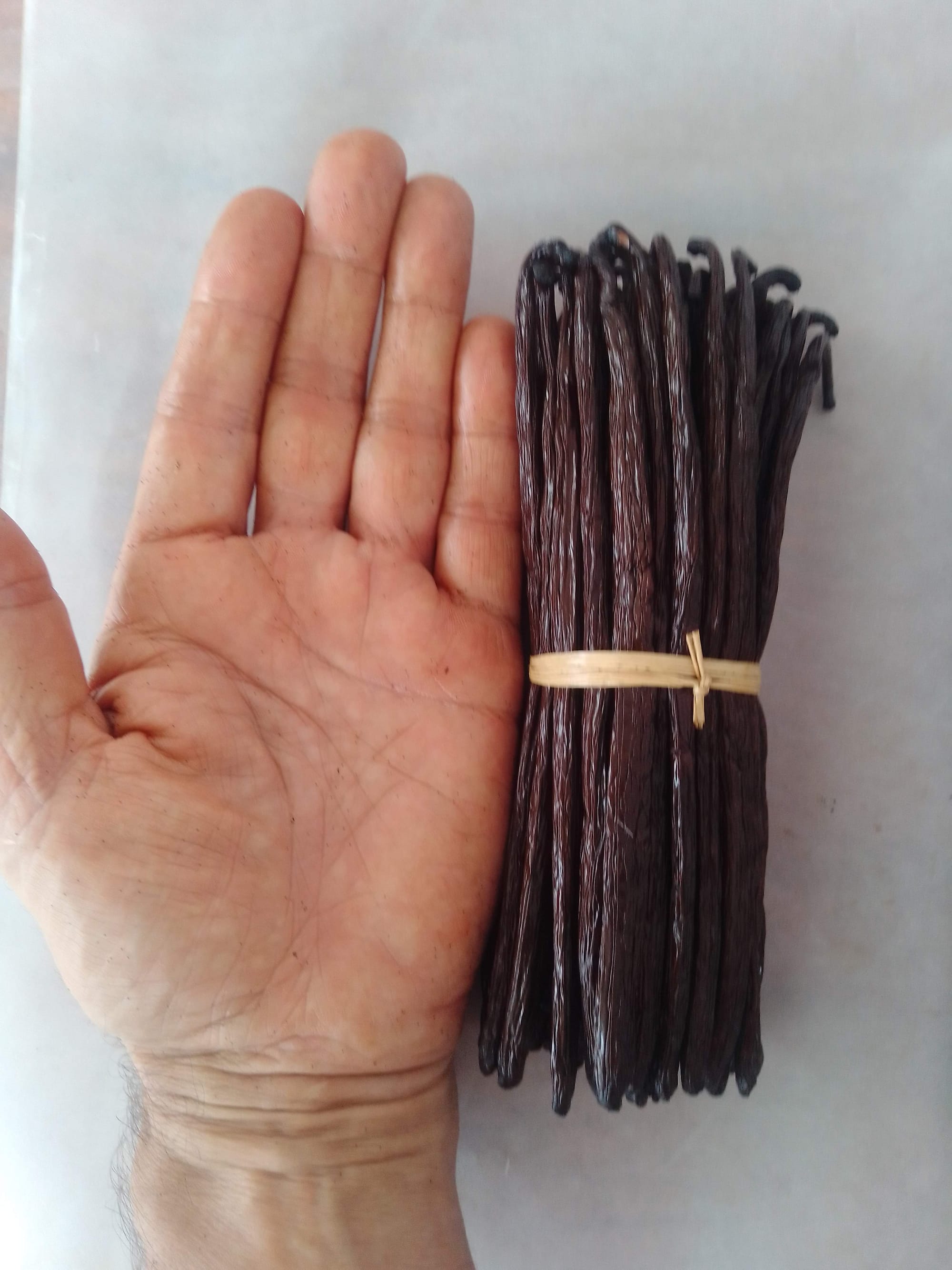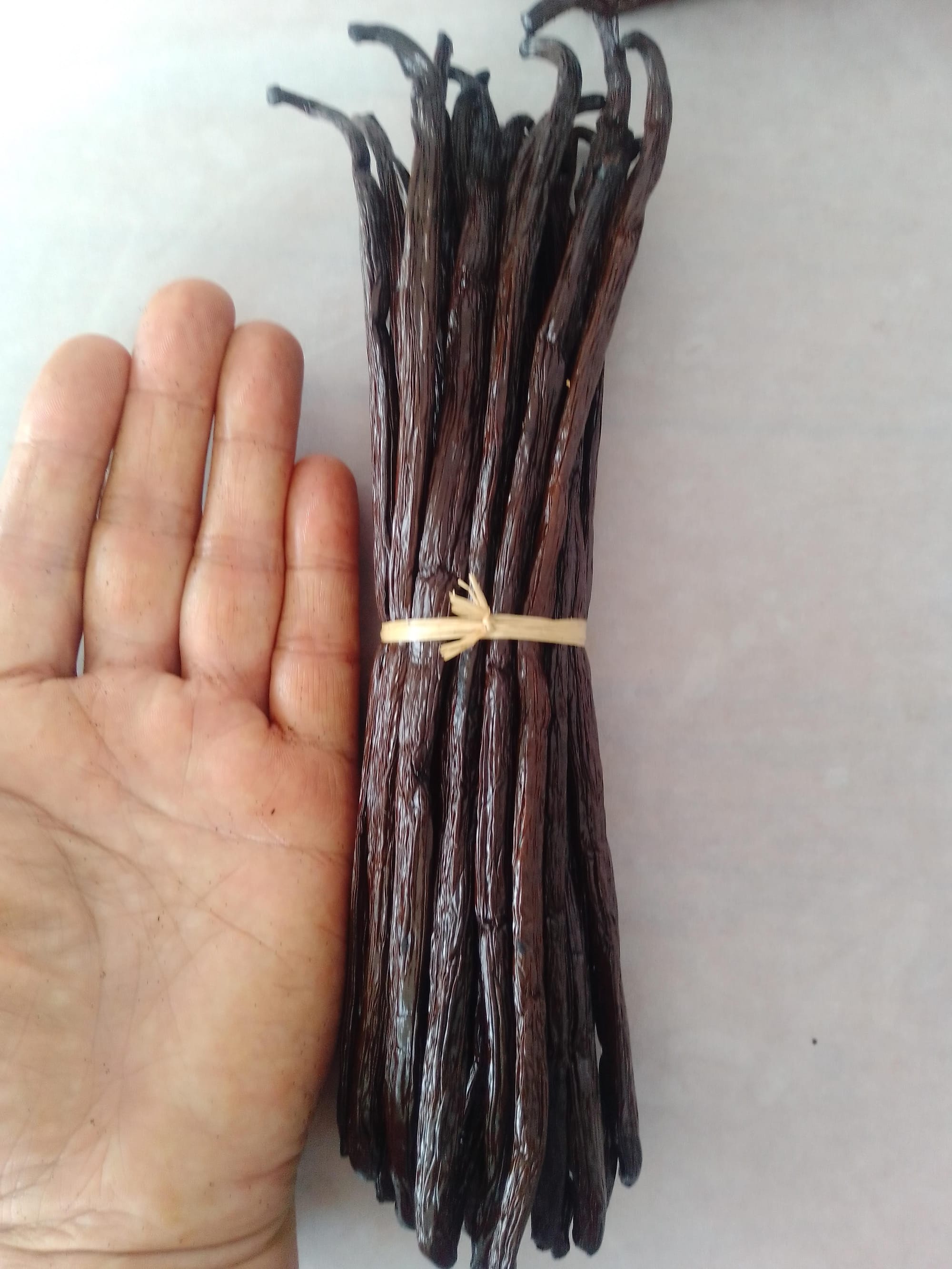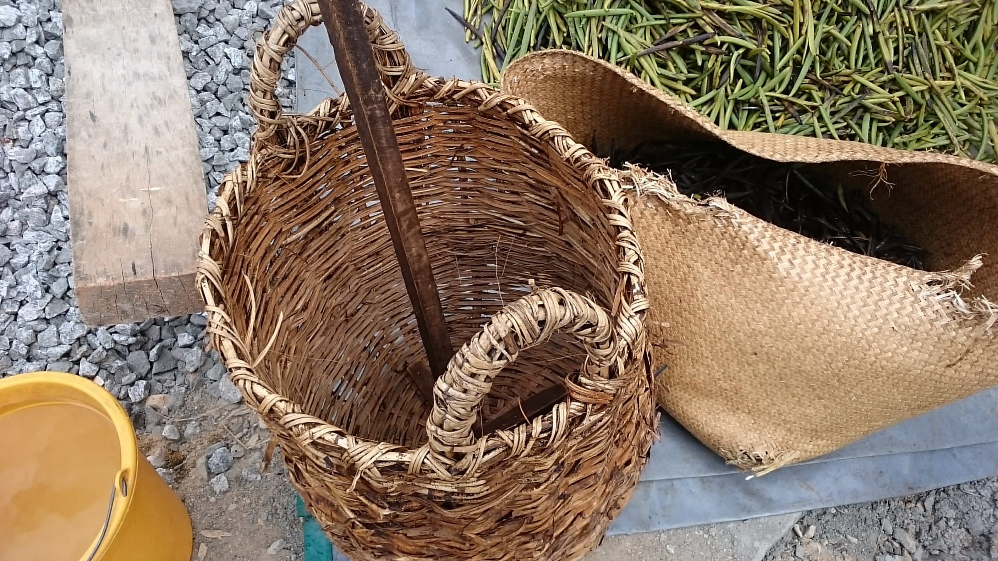 Nous approchons des dates des récoltes . Dans les sous bois, le spectacle des lianes enguirlandées de grappes est réjouissant. C'est le moment de comparaison en terme de qualité et de quantité par rapport aux années précédentes . Mais les gousses doivent avoir la maturité suffisante pour garantir les meilleures vanilles. C'est la période cruciale pour la surveillance avant récolte.