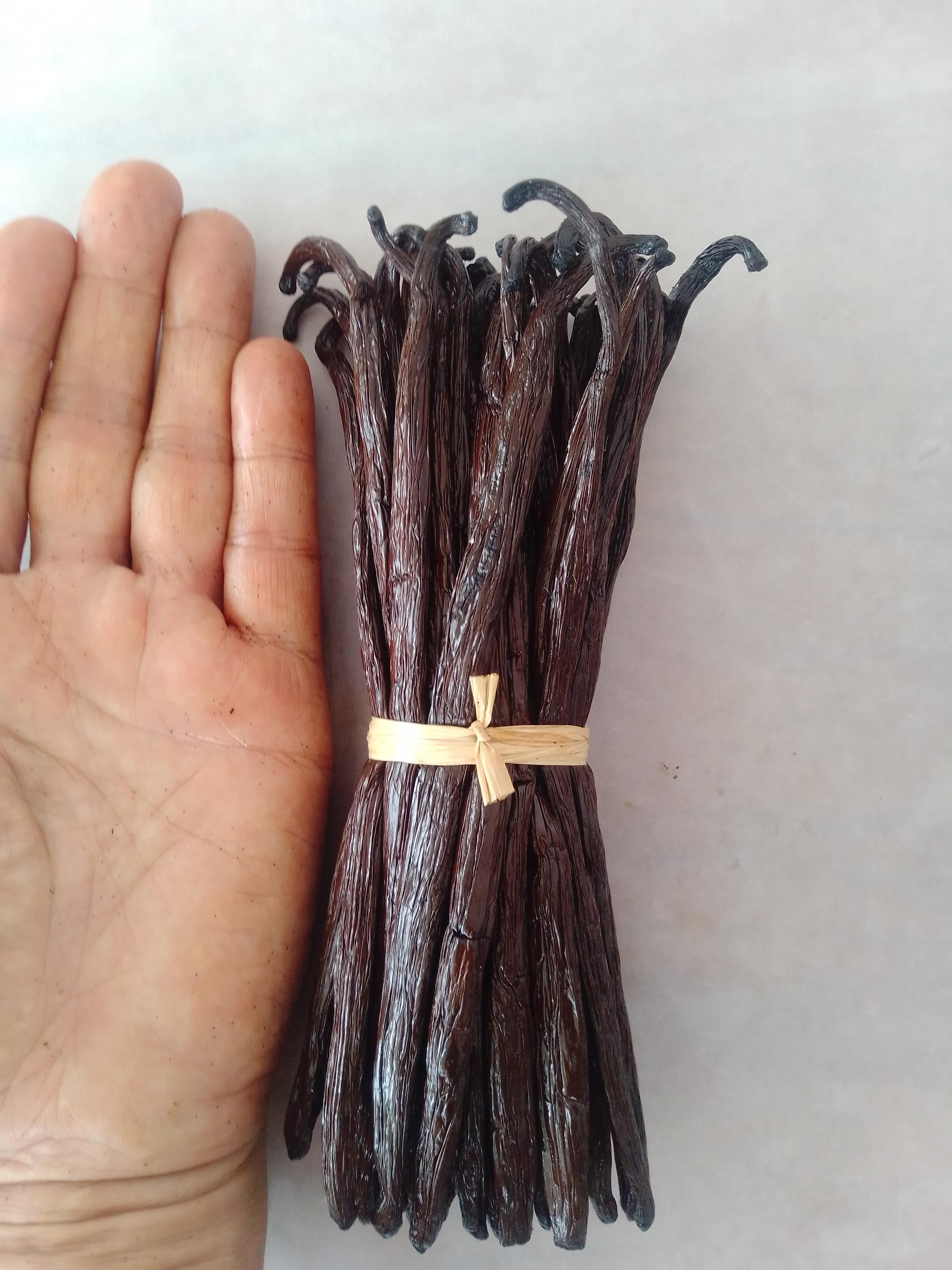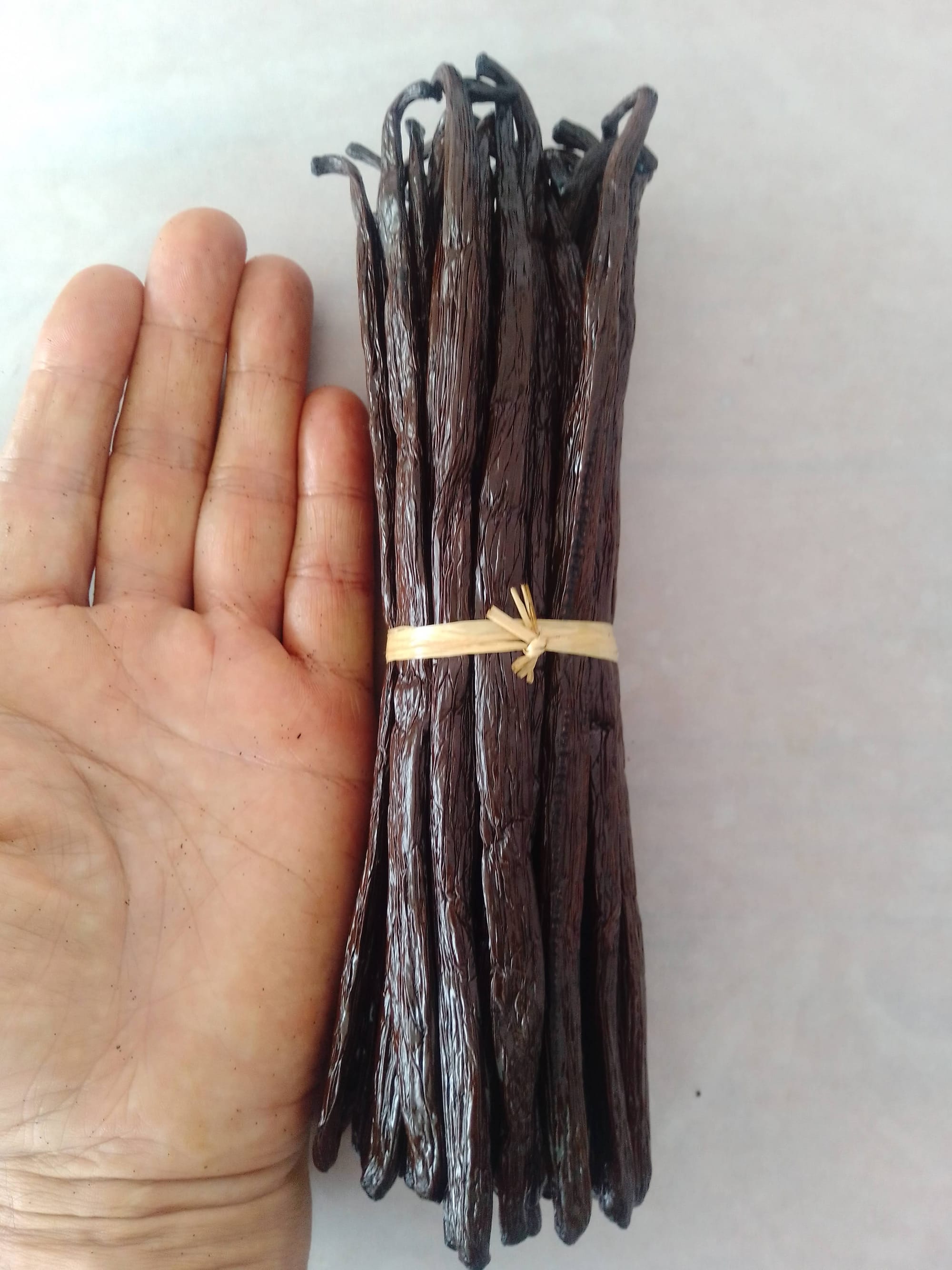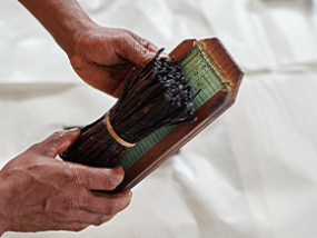 Les lianes plient sous le poids des grappes charnues. Il faudra attendre 8 mois de pleine maturité avant de pouvoir récolter les vanilles vertes. C'est à partir du mois de juin que les 1ères gousses vertes seront arrachées de leur liane. Les derniers ramassages se termineront au mois de septembre.